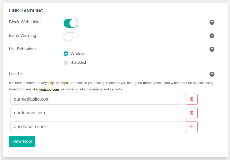 &#x20;The Modr8 engine supports removing messages containing links by you specifying either: