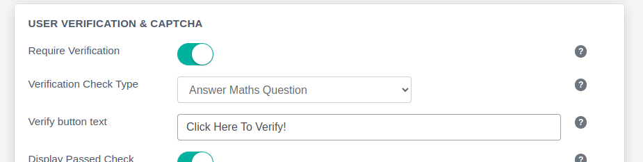 5. Ensure the verification check type is set to `"Answer Maths Question"`