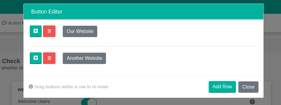 7. If you want to add another button follow the same process again, if you want to add a new row click the `"Add Row"` button.
